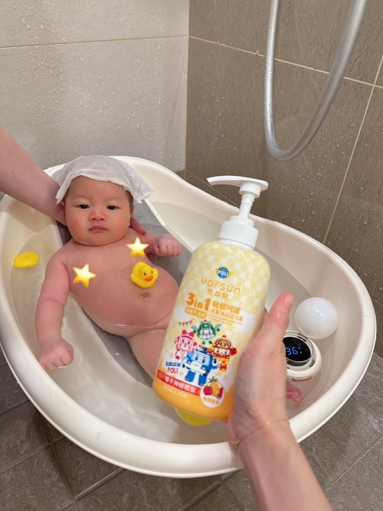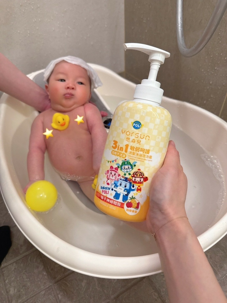 不需要特別搓洗,很適合寶寶還小、怕水的時候快速洗澡